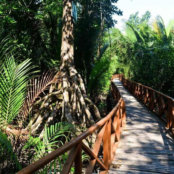 Known for limestone caves, mangroves, and mud volcanoes.