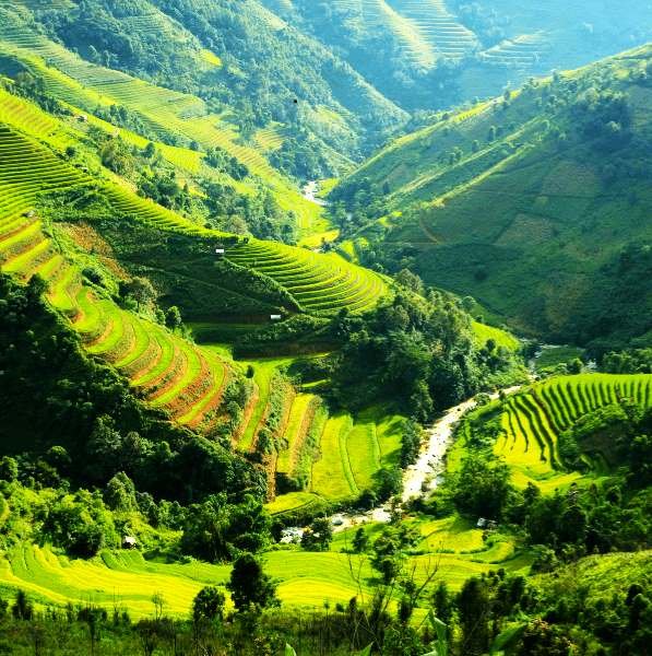 Picturesque valley surrounded by bamboo groves and mountain streams.